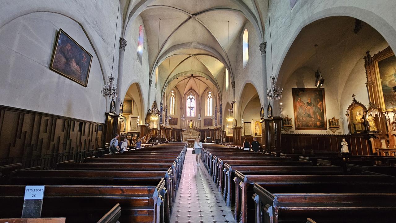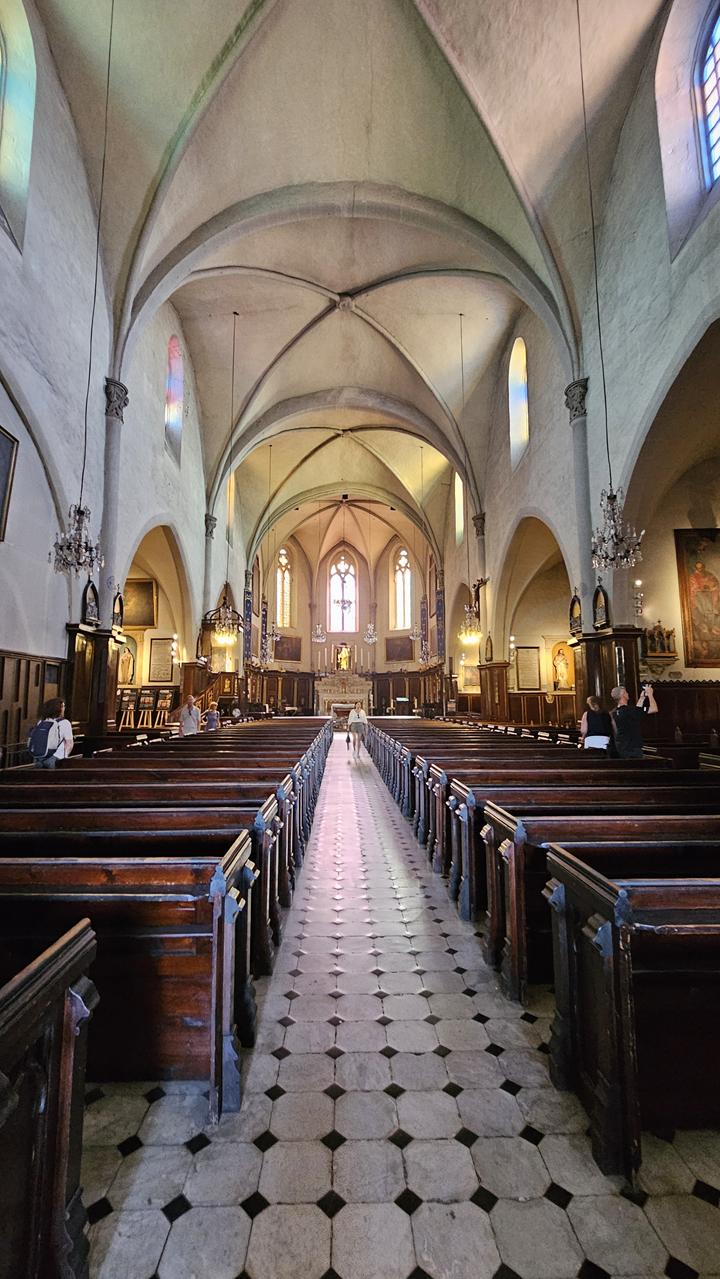 Oben am Hügel von Le Suquet angekommen, gibt es einen Zwischenstopp von 15 Minuten an der Kirche Notre Dame d’Esperance. Heute morgen war die Kirche aufgrund einer Beerdigung geschlossen, jetzt sind die Tore wieder geöffnet. Perfekt, dann sehen wir die Kirche auch noch von innen 🙂
