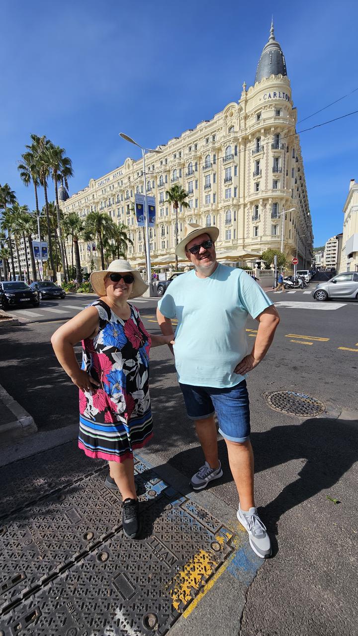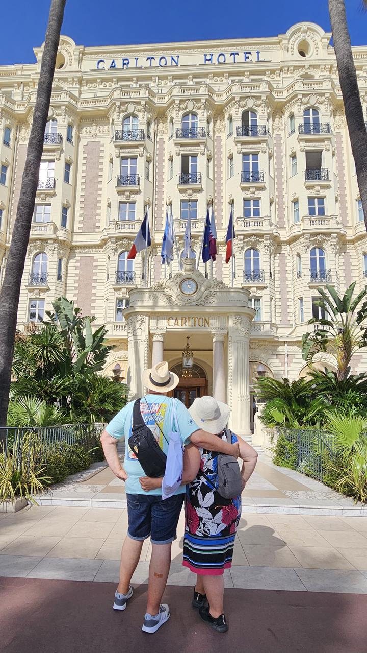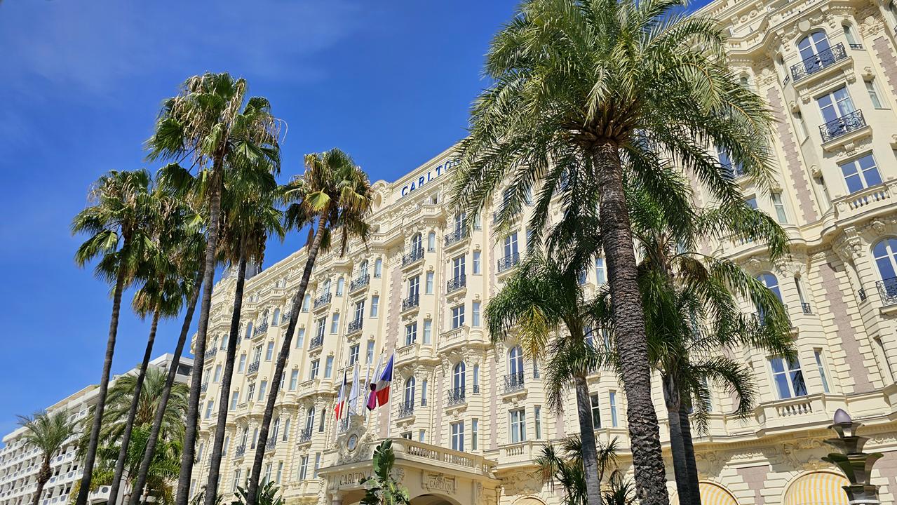 Dann erreichen wir das imposante Hotel Carlton. Staunend stehen wir vor dem beeindruckenden Bauwerk, das zeitlosen Glamour verkörpert. Vor dem strahlend blauen Himmel sieht das Hotel einfach fantastisch aus!