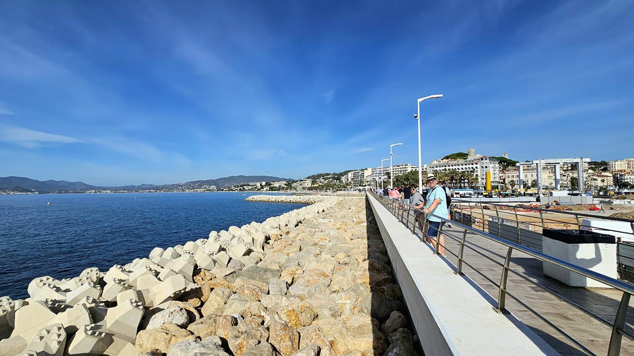 Gemütlich schlendern wir den Pier entlang, Richtung Altstadt. Unser Tender-Pier liegt im westlichen Teil des Hafens zwischen Quai Max Laubeuf und Quai du Large, nicht weit entfernt vom Hafen, der Altstadt und dem berühmten Palais des Festivals. Alles zu Fuß erreichbar und später einfach wieder zu finden 🙂 Perfekt!
