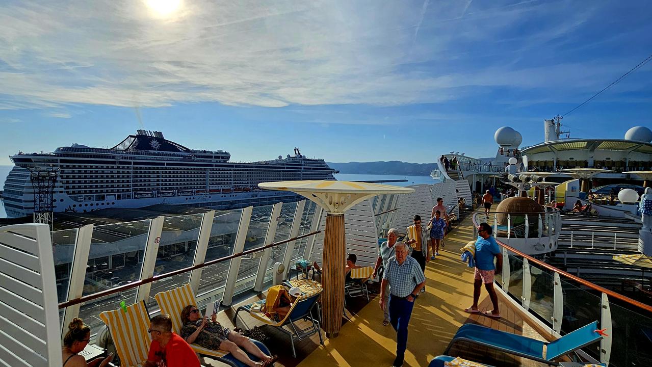 Den Rest des Tages verbringen wir auf dem Pooldeck und genießen die Sonne. Um 17.00 Uhr legt unser Schwesterschiff AIDAcosma ab und wir beobachten wie sie gemächlich abfährt. Nur noch eine halbe Stunde, dann nehmen auch wir Abschied von Marseille.