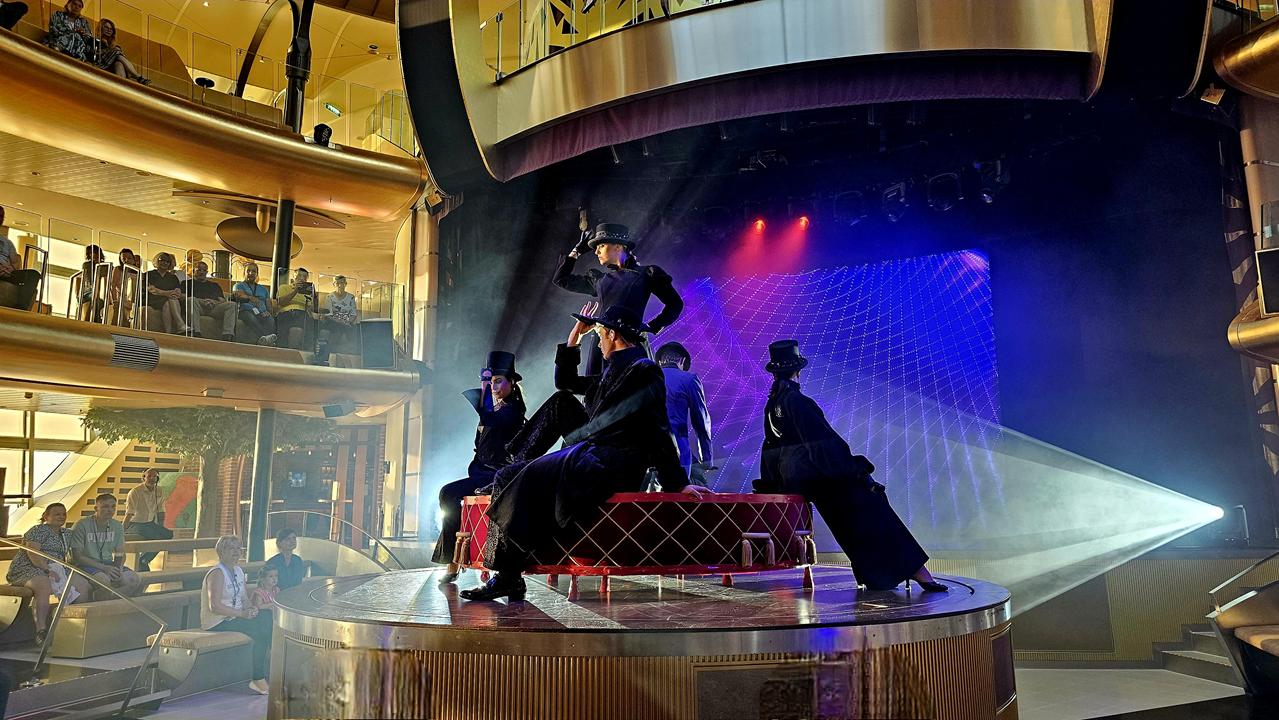 Unsere Abendplanung sieht wie folgt aus: Erst um 19 Uhr im Theatrium die Show „Queen – I want it all“, anschließend Abendessen und dann um 21.30 Uhr zur Silent Party auf das Pooldeck. Und genau so machen wir es 🙂