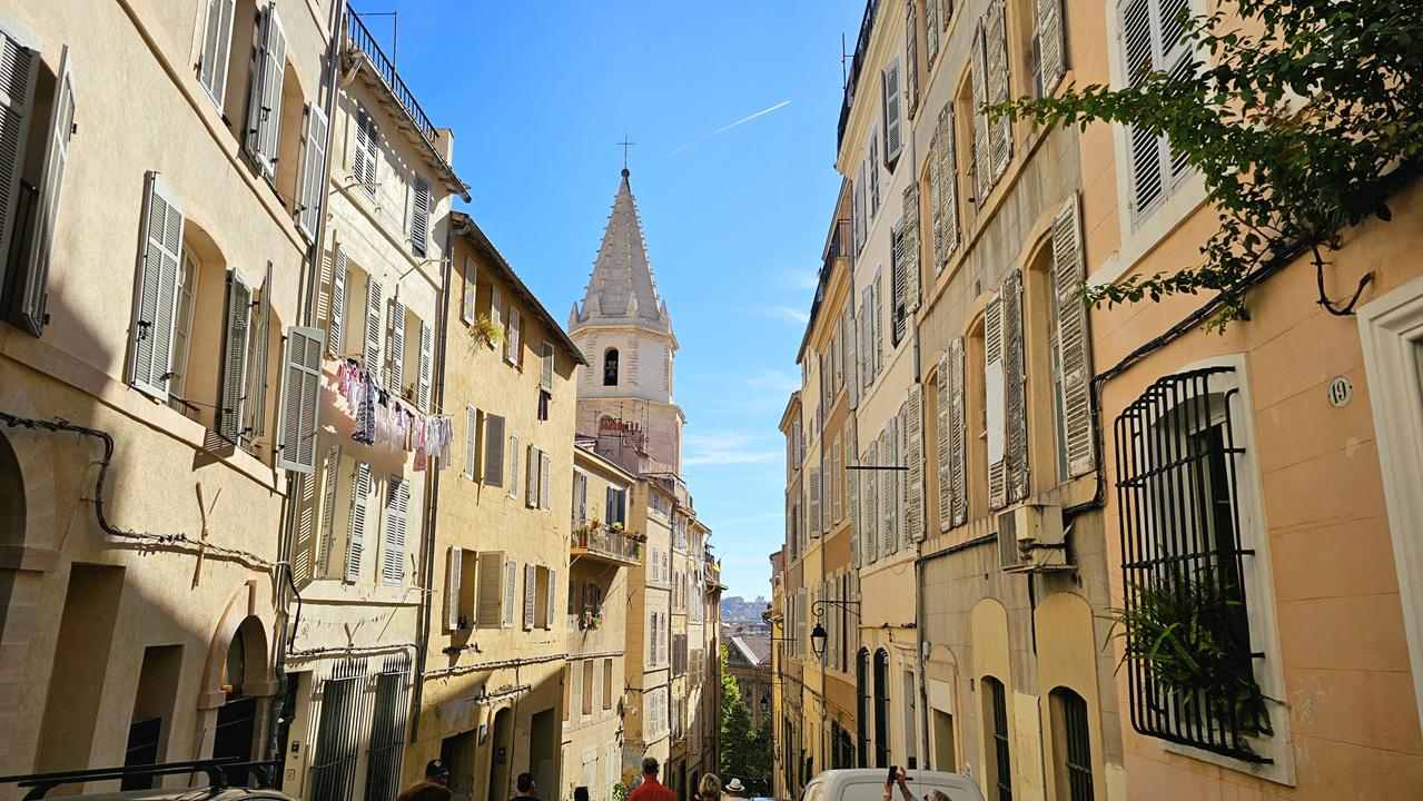 So langsam nähern wir uns unserem nächsten Ziel: Dem Alten Hafen. Wir laufen durch die Montée des Accoules, eine historische, malerische Gasse in der Altstadt. Über dem Viertel thront der Glockenturm der Kirche Notre-Dame-des-Accoules, die das Herzstück der Gegend bildet. So, wie das Viertel wuchs, veränderte sich auch das Gotteshaus und wurde mit jedem Bau größer. Die kleine Kapelle aus dem 11. Jahrhundert machte im 13. Jahrhundert Platz für die Kirche mit Glockenturm.