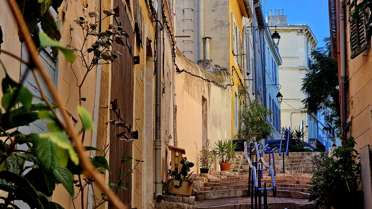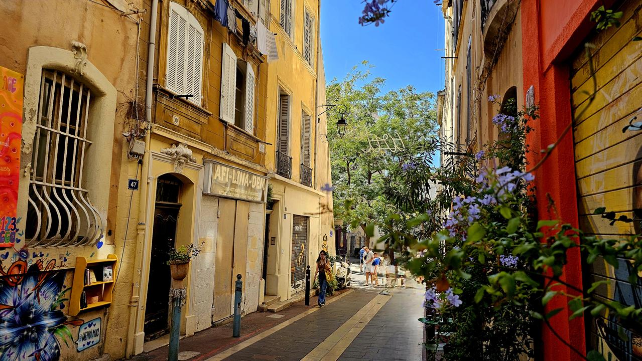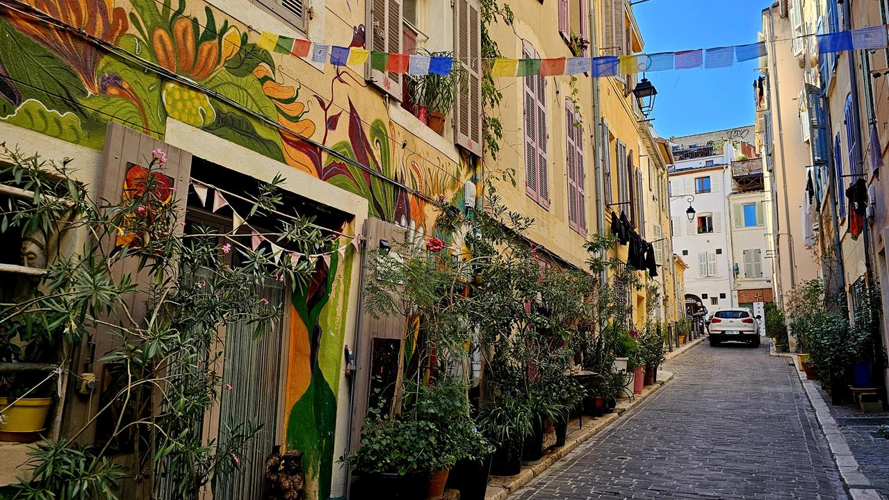 Le Panier ist das älteste Viertel von Marseille – und fühlt sich an wie ein kleines Labyrinth. Enge, kopfsteingepflasterte Gassen schlängeln sich zwischen bunten Häusern hindurch, immer wieder unterbrochen von Treppen, kleinen Plätzen und blumengeschmückten Balkonen. Es hat fast etwas von einem mediterranen Dorf mitten in der Stadt.