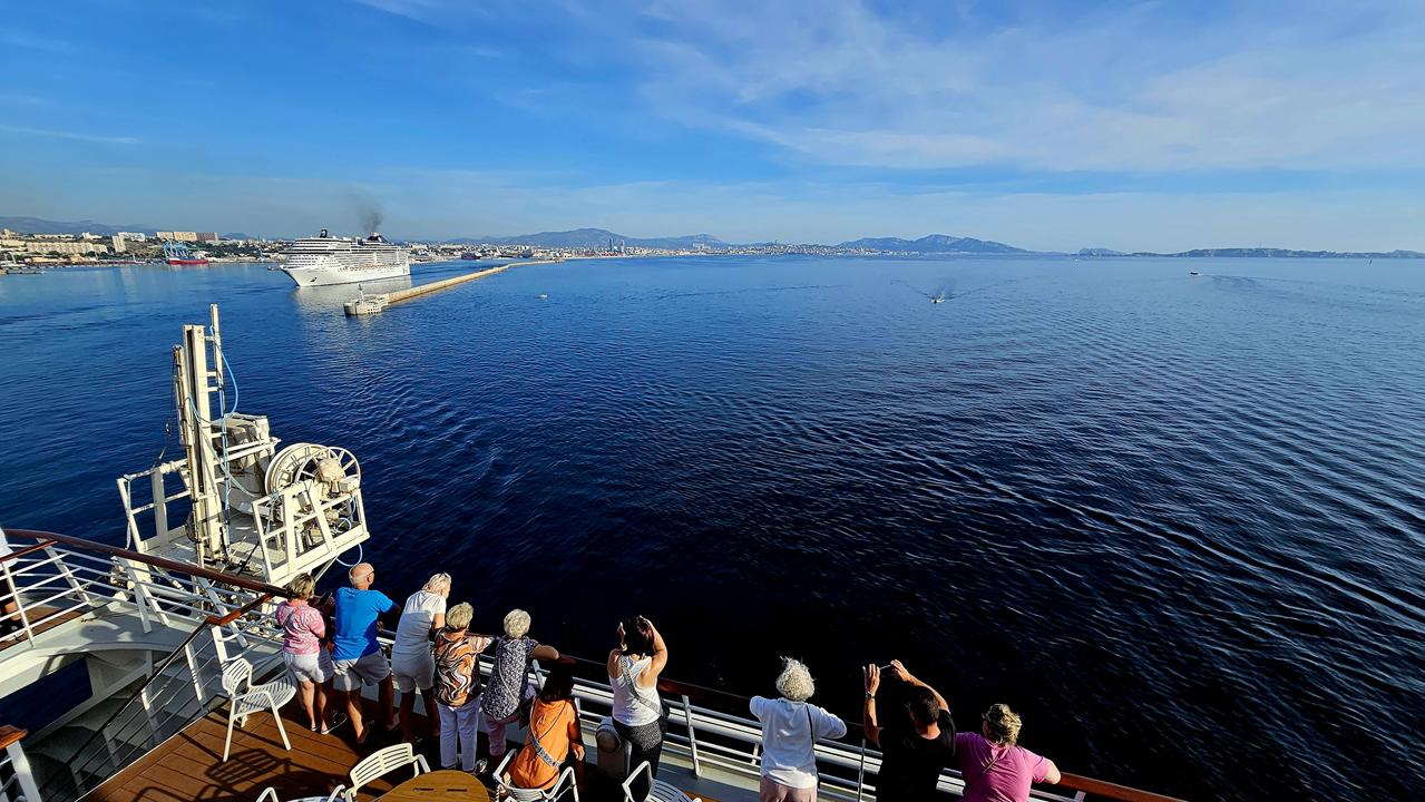 Pünktlich um 17.30 Uhr beginnt das Ablegemanöver. Das Sail Away erklingt, wir stehen an der Reling und beobachten, wie AIDAstella langsam den Hafen verlässt. Wir genießen ein letztes Mal die Aussicht auf Marseille, die Basilika Notre-Dame-de-la-Garde thront oben auf dem Hügel. Ein laues Lüftchen weht uns um die Nase, ein kühler Cocktail in der Hand – was gibt es besseres?