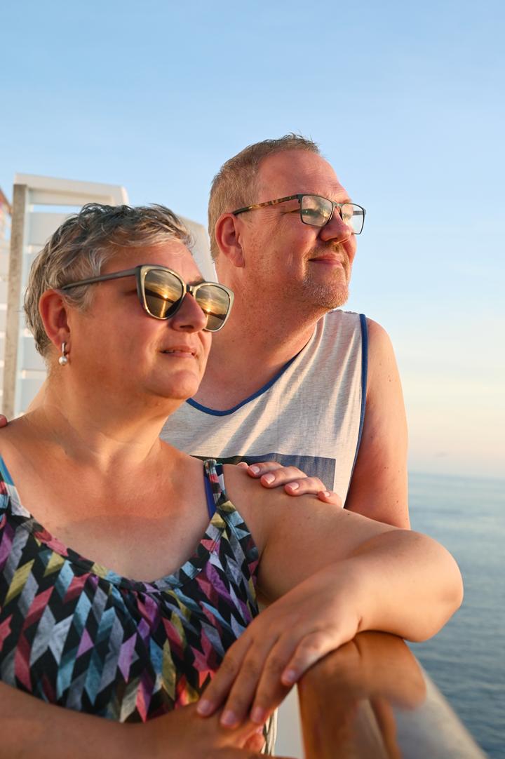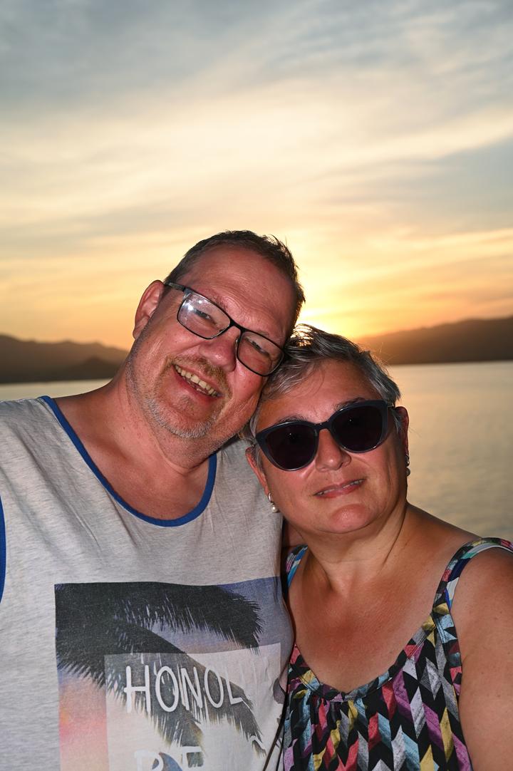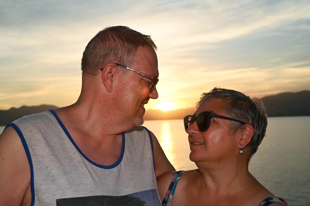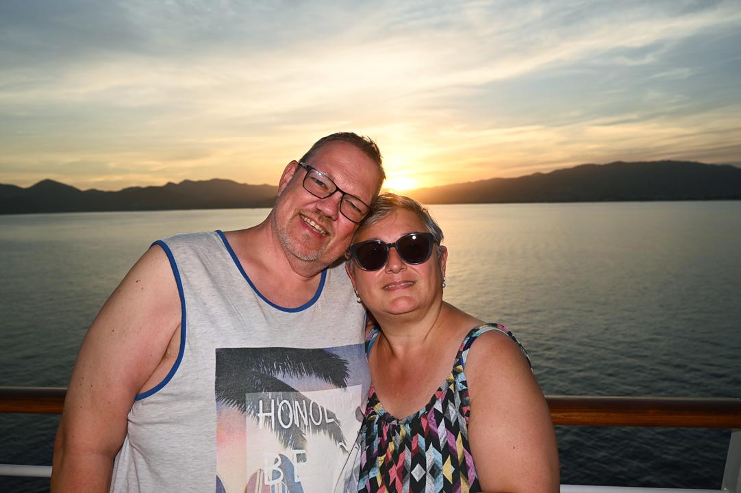 Auf einmal sehen wir in der Nähe die AIDA-Fotografin beim Sonnenuntergangs-Fotoshooting stehen. Spontan entscheiden wir uns dafür mitzumachen, einfach so in unseren „Pool-Klamotten“ 😉 Die Shooting-Fotos sind nicht in unserer Foto-Flat enthalten, wir müssten das Foto kaufen, wenn uns eins gefällt. Wir lassen uns einfach überraschen.