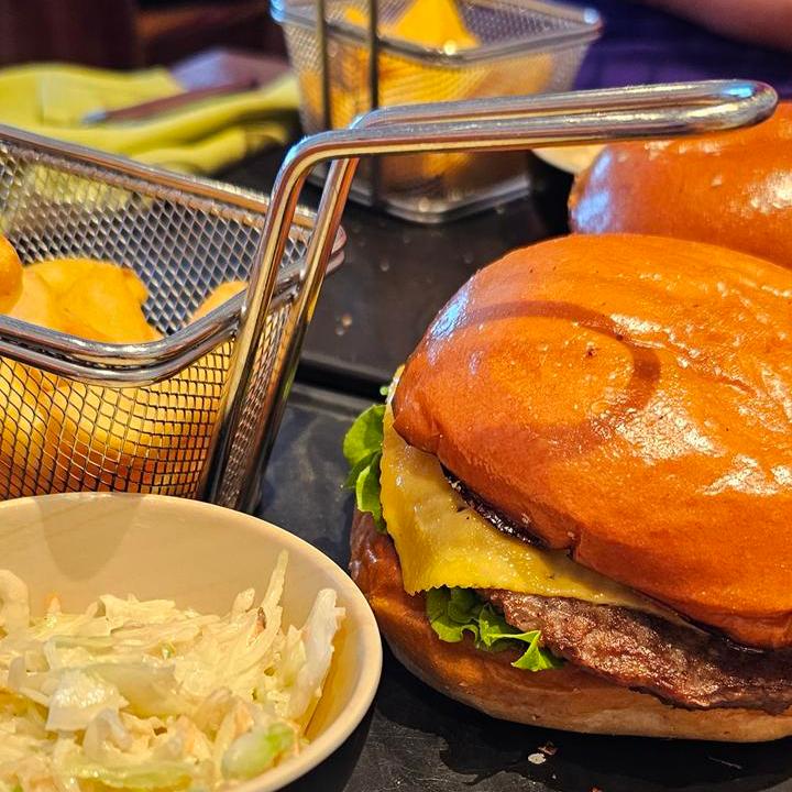 Insgesamt sind wir fast 1,5 Stunden dort. Die Wartezeit verfliegt aber recht schnell, wir unterhalten uns sehr nett mit dem Pärchen an unserem Tisch. Irgendwann wird unser Essen serviert. Und das Warten hat sich gelohnt: Der Burger ist wirklich sehr lecker!