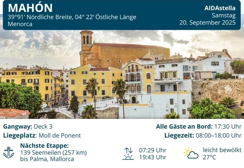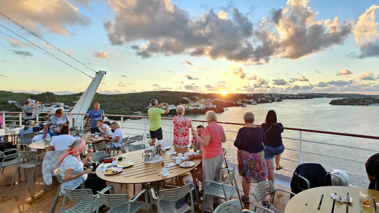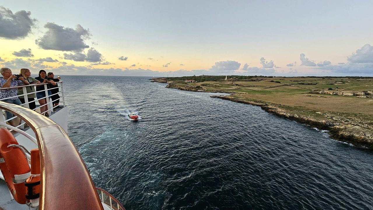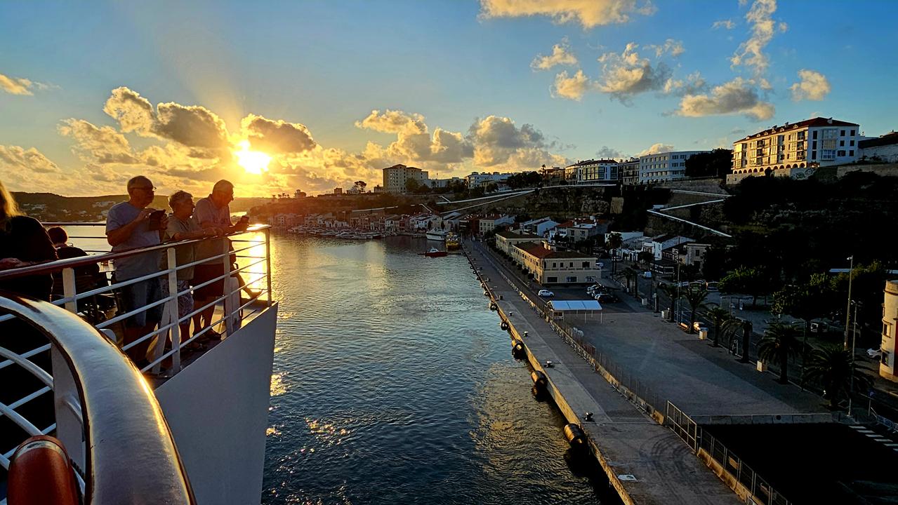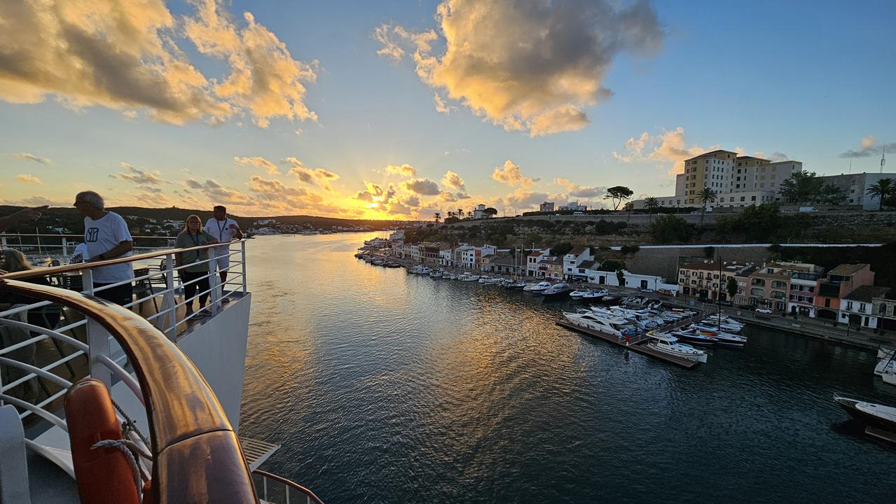 Das Wetter ist herrlich: angenehm warm, eine leichte Brise, die nach Salz und Sommer riecht. An Deck herrscht stille Begeisterung, Kameras klicken, Blicke schweifen. Mit jedem Meter eröffnet sich eine neue Aussicht, schöner als die vorherige. Mahón empfängt uns gelassen und stolz – und schon bei der Einfahrt ist klar: Menorca versteht es uns zu verzaubern.