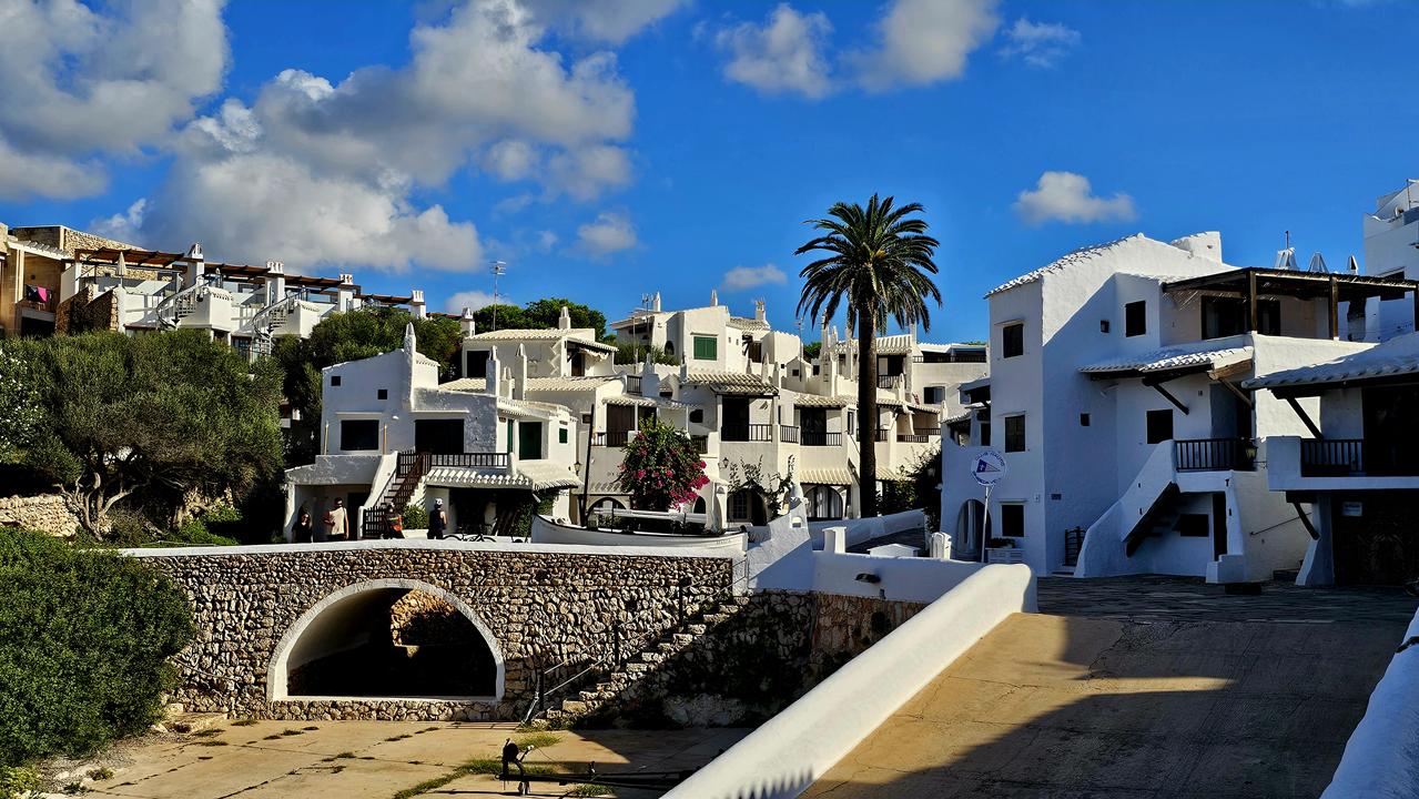 Und genau dafür ist es perfekt. Binibèca Vell, in den 1960er-Jahren an der Südostküste Menorcas erbaut, wurde einem traditionellen Fischerdorf nachempfunden. Enge, verwinkelte Gassen, strahlend weiß getünchte Häuser und kleine Durchgänge machen den Ort zu einem einzigen Postkartenmotiv. Nicht umsonst wird Binibèca oft als das „spanische Mykonos“ bezeichnet – ein Dorf, das man am besten langsam und zu Fuß erkundet, Kamera immer griffbereit.