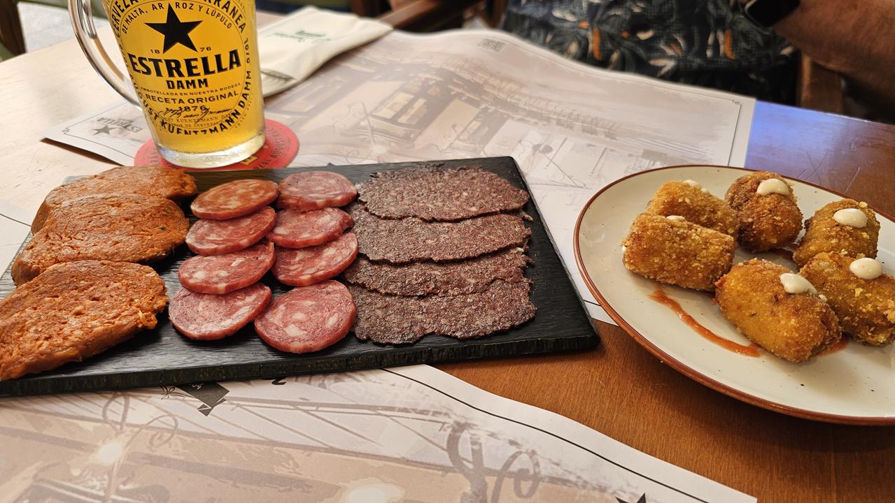 Und dann überkommt uns ein kleines Hüngerchen. In einem Tapas-Restaurant mit Außenterrasse finden wir in nettes schattiges Plätzchen und lassen uns typische spanische Tapas schmecken. Besonders die lokalen Käse- und Wurstspezialitäten haben es uns angetan. Eine leckere und entspannende Pause 🙂