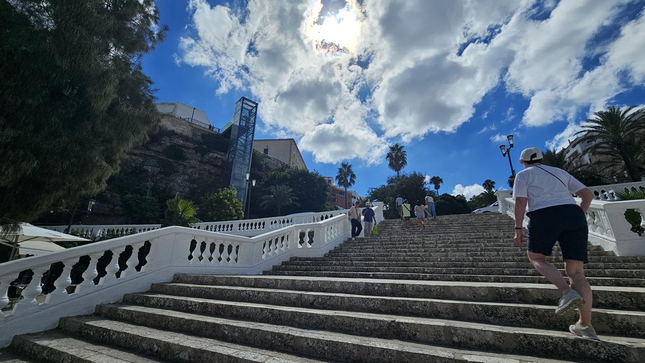 Wir spazieren zunächst gemütlich am Hafen entlang. Auch hier lohnt sich das Schlendern: Zahlreiche Restaurants, Bars und Cafés säumen die Promenade und laden zum Verweilen ein. Schließlich stehen wir vor einer langen Treppe, die hinauf in die Altstadt führt – viele Stufen, ganz schön steil. Für Autos gibt es eine serpentinenartige Straße nach oben.