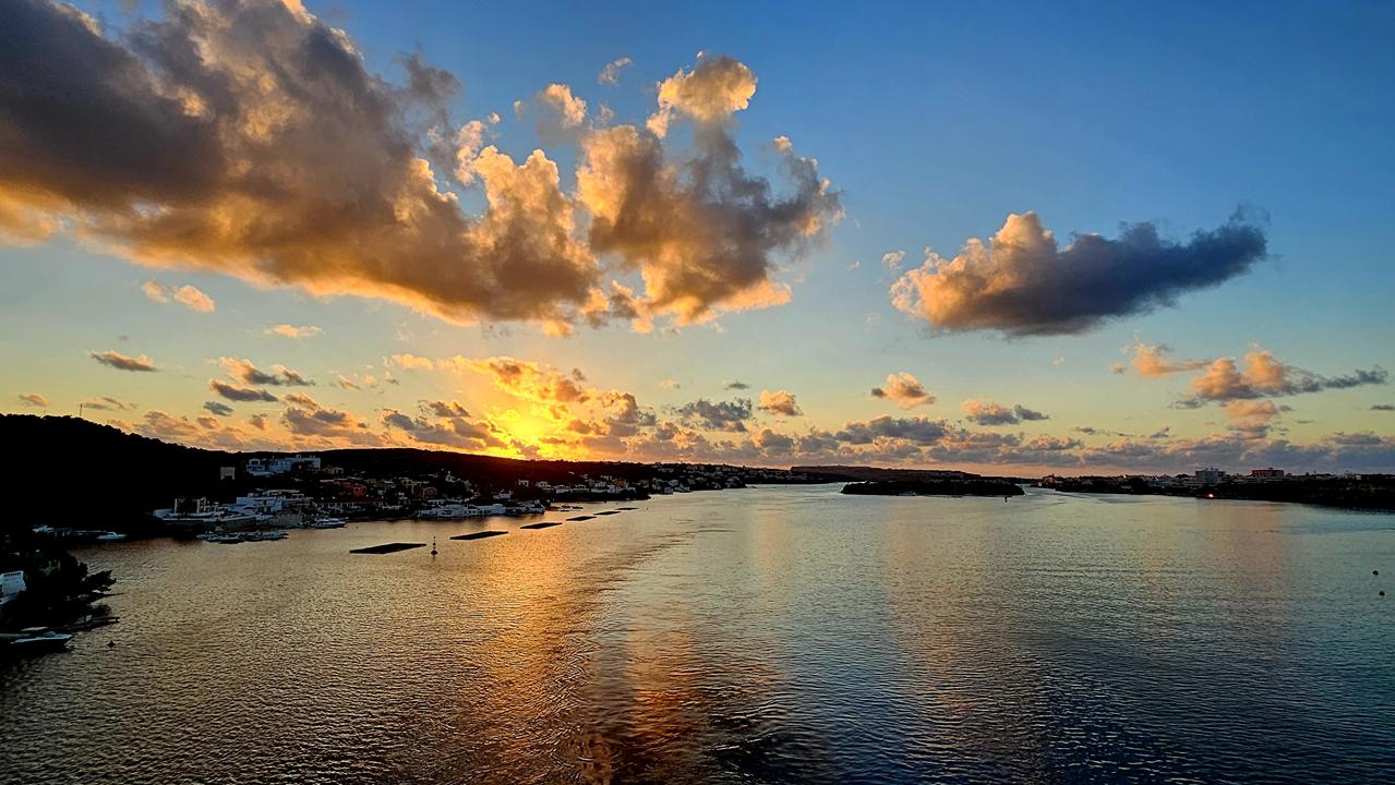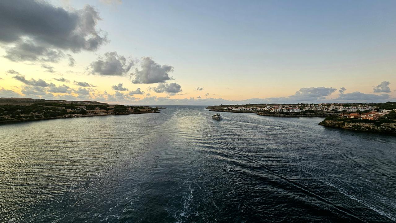 Wie schon am Morgen geht es erneut durch den beeindruckenden Naturhafen von Mahón, den größten natürlichen Hafen Europas. Die fjordartige Bucht bietet nicht nur Schutz vor Unwetter und starkem Wellengang, sondern ist mit einer natürlichen Tiefe von bis zu 30 Metern ideal für Schiffe aller Art. Ganze sechs Kilometer lang und an der breitesten Stelle bis zu 1.200 Meter breit, ist dieser Hafen ein echtes Naturwunder – ein perfekter Abschied von einem rundum gelungenen Tag auf Menorca.