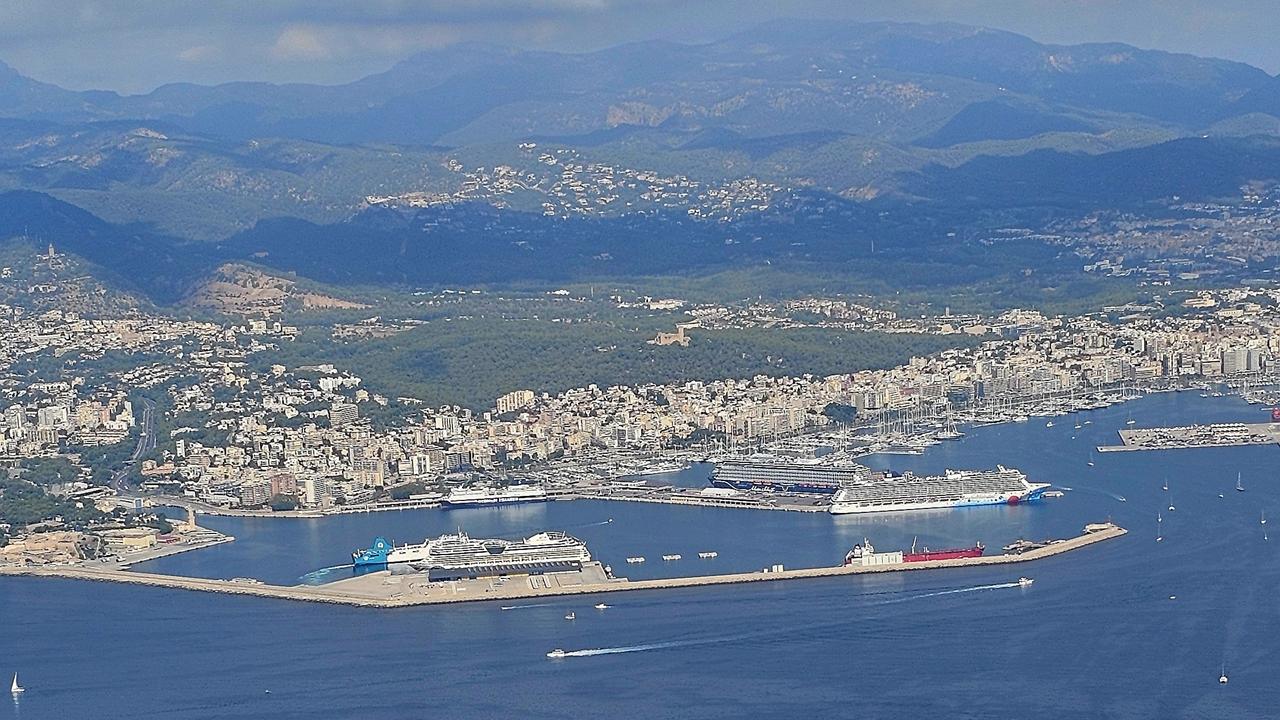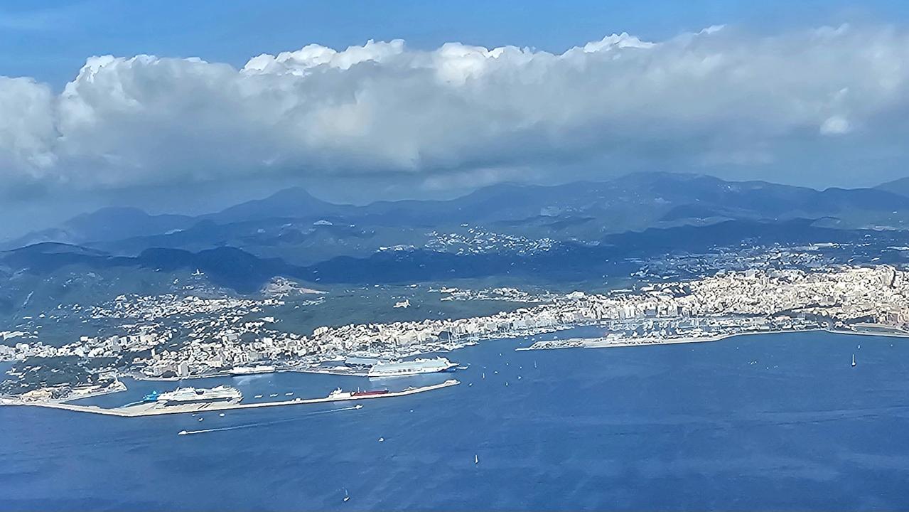 Und dann: Endlich geht es um 11:15 Uhr los! Yipiiiieeeh! In der Luft dreht unser Flieger eine Abschiedsschleife über Palma. Wir erhaschen einen letzten Blick auf AIDAstella 🙂 und zwei weitere Kreuzfahrtschiffe, die ebenfalls im Hafen liegen.